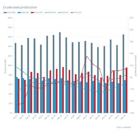 世界钢铁协会:3月全球粗钢产量1.651亿吨 同比提高1.7%