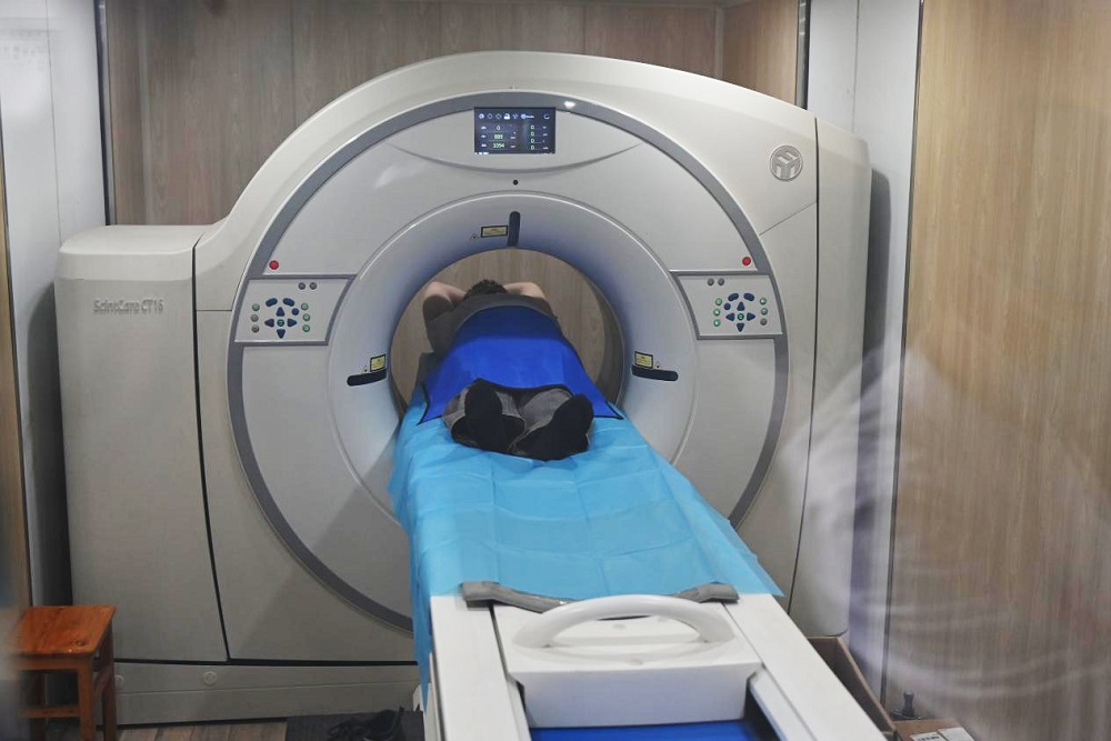 义诊过程中,闽东医院带来了国内先进的车载CT车等医疗设备,提供免费的超声检查、前列腺癌筛查等项目,并为患者提供部分义诊药品。