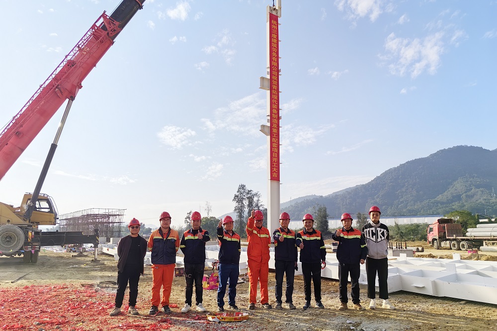 12月2日,阳光明媚、晴空万里,福建青拓设备制造有限公司董事长丁朝辉、副总经理杨元平带领各部门领导及现场施工相关负责人,在溪尾镇青拓现代装备制造及重工配套项目施工现场参加钢结构厂房首支立柱吊装落位仪式。